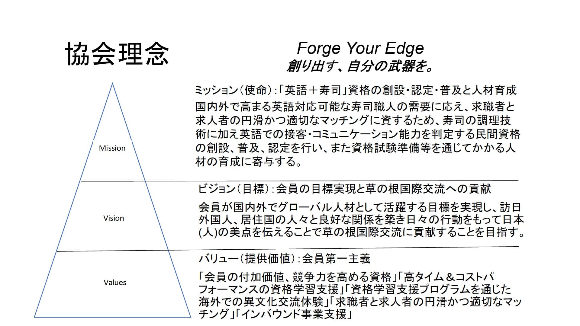 ミッション(使命):「英語+寿司」資格の創設・認定・普及と人材育成