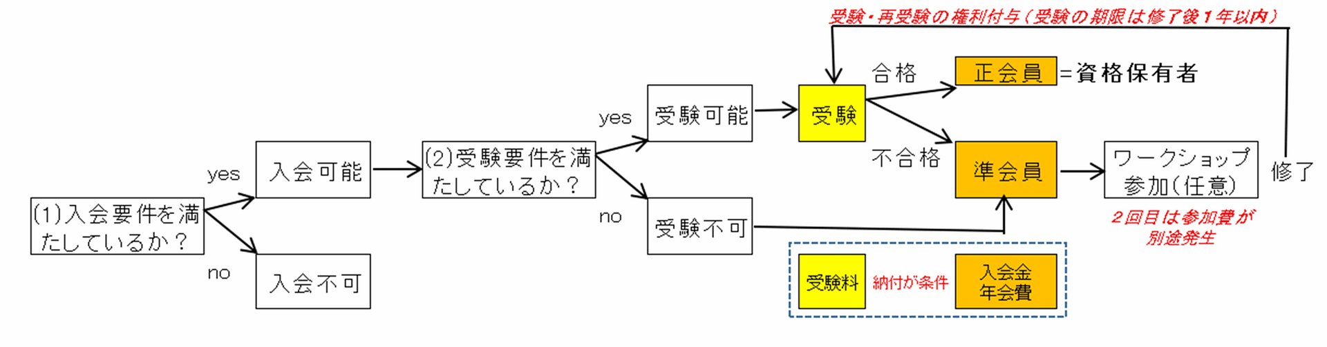 - 入会資格を満たしているか?←「正会員、準会員以前に会員になれるかどうか」という判断